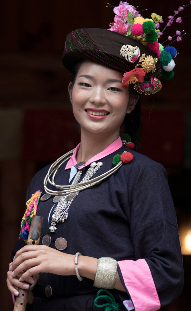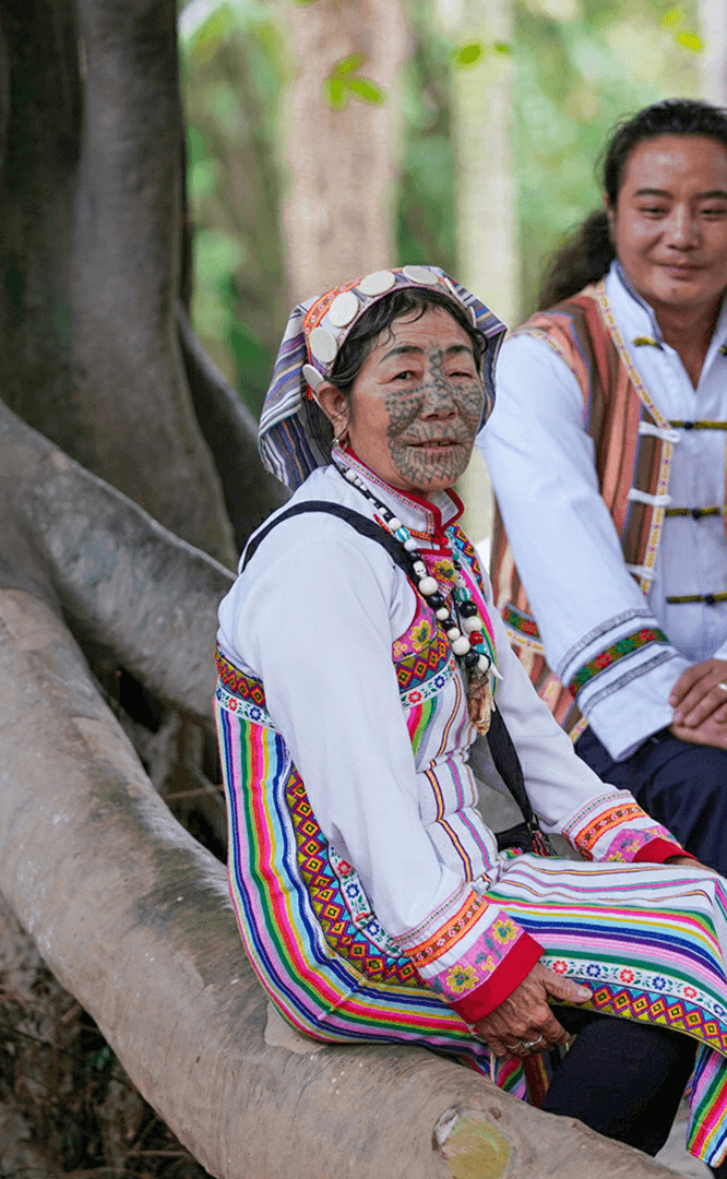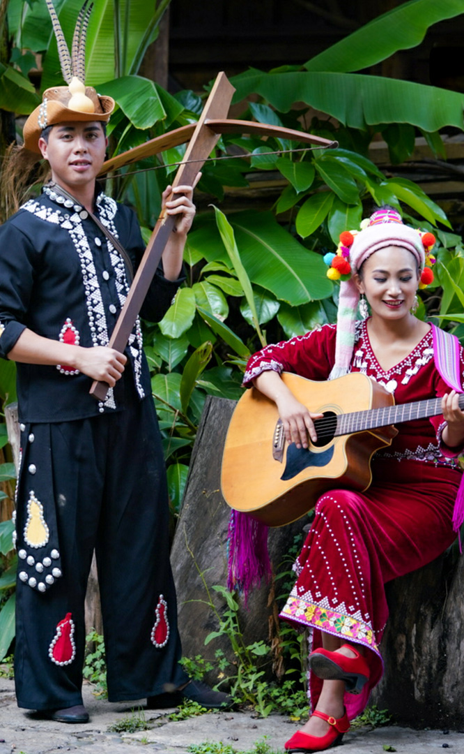 德昂族人口約1.7萬,主要分布在德宏州和保山市的潞西、梁河、瑞麗、隴川、隆陽等縣區(qū)。民居多為草排覆頂竹木結構的干欄式建筑,眼前的德昂村建筑納入了能容納數(shù)十人居住的德昂大房子,氈帽頂?shù)男》孔?,還有頗具浪漫色彩的大公房、小公房……還建有“龍陽塔”標志及佛教奘房、佛塔。德昂族民間普遍信奉南傳佛教,民俗活動與佛事活動關聯(lián)緊密。潑水節(jié)、開門節(jié)、關門節(jié)是重大節(jié)日。德昂族服飾色彩豐富,口頭文學特別是民歌創(chuàng)作活動...