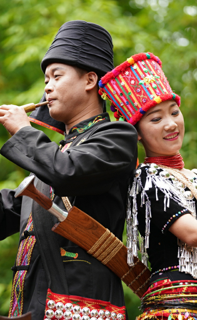 拉祜族人口約41萬,主要聚居在思茅、臨滄境內的瀾滄江沿岸地區(qū)。拉祜族寨與基諾族寨緊緊毗連,寨內建有拉祜族茅草房、大公房、教堂、牛棚以及葫蘆廣場。位于拉祜族寨中心位置的葫蘆廣場形似一只碩大的葫蘆平面,核心有一組石雕葫蘆。傳說拉祜族的祖先誕生于葫蘆中,因此葫蘆廣場表現(xiàn)了拉祜族的祖先崇拜觀念。漫步拉祜族寨,葫蘆笙悠揚婉轉、口弦聲余音繞梁,表現(xiàn)拉祜族勞動場面的“豐收擺舞”充滿歡騰和激情,展示了拉祜族的民間...
